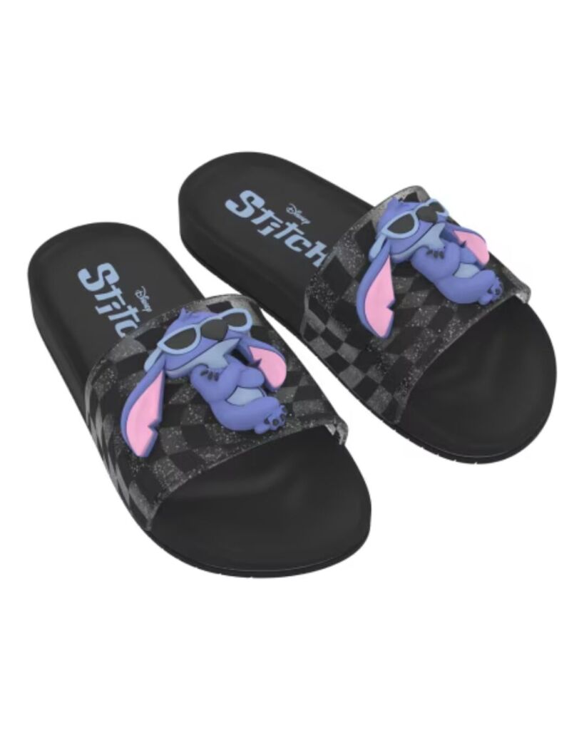 Chinelo Slide Infantil Stitch Grendene Preto Glitter 23285