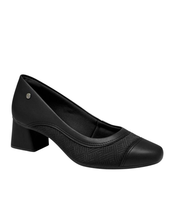 Scarpin Campesi Preto com Salto Baixo e Textura Geométrica
