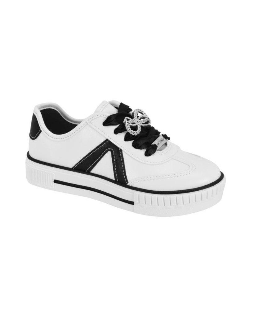 Tênis Plataforma Cadarço de Fita Molekinha Branco/Preto 2565.117